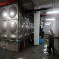 二次供水水箱清洗有以下注意事项:清洗前制定清洗计划:提前规划好清洗时间,尽量选择对居民用水影响较小的时段,如夜间或周末,并提前通知用户做好储水准备。准备清洗设备和材料:包括专业的清洗工具,如高压水枪、刷子、清洁布等;消毒药品,如含氯消毒剂;安全防护用品,如手套、口罩、护目镜等;以及检测水质的仪器。关闭相关设备:清洗前关闭水箱的进水阀、出水阀和电源,确保在清洗过程中水箱内无水流进出,避免发生意外。排空水箱:打开水箱底部的排水阀,将水箱内的水排空。如有需要,可使用抽水设备辅助排水,排完水后打开人孔盖
